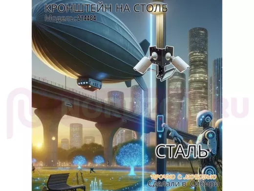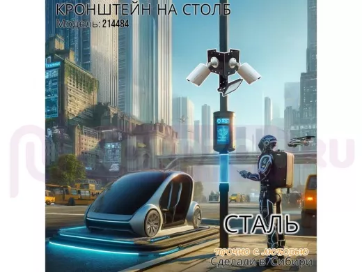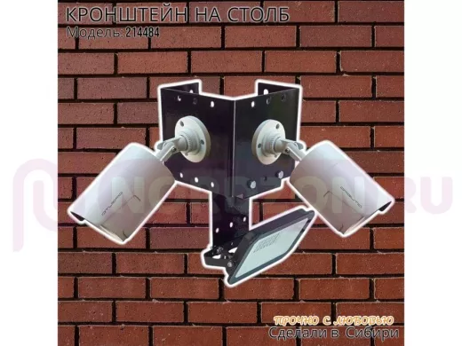 - Кронштейн для двух камер и прожектора, крепится при помощи СИП ленты монтажной на квадратный или круглый столб.