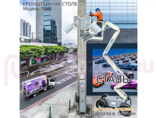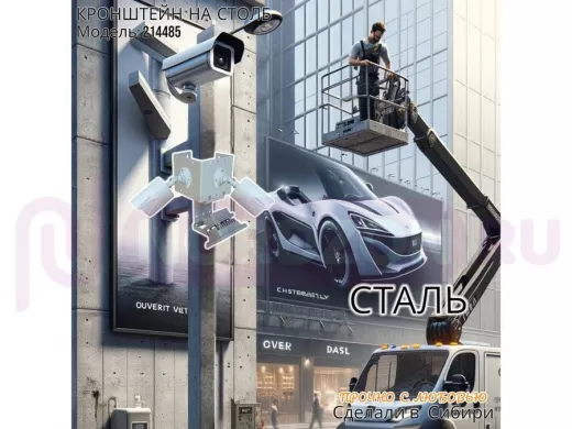 - Кронштейн позволяет быстро зафиксировать камеры видеонаблюдения или прожектор на столбе, не сверля его.
