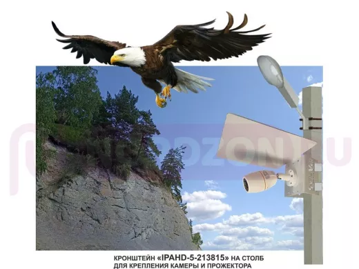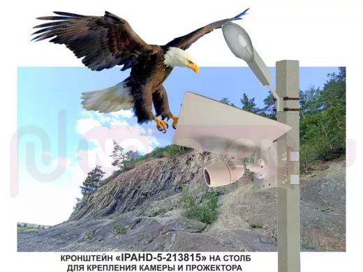 Заказать звонокКронштейн для камеры и прожектора на столб с козырьком "IPAHD-5-213815" серый, под СИП-ленту, хомут