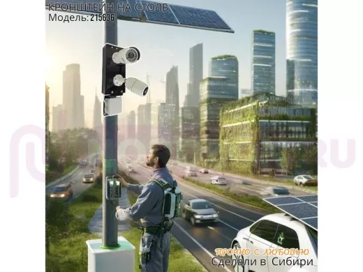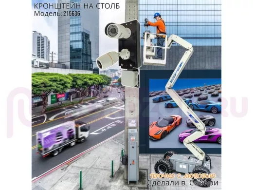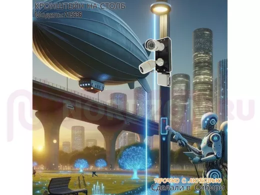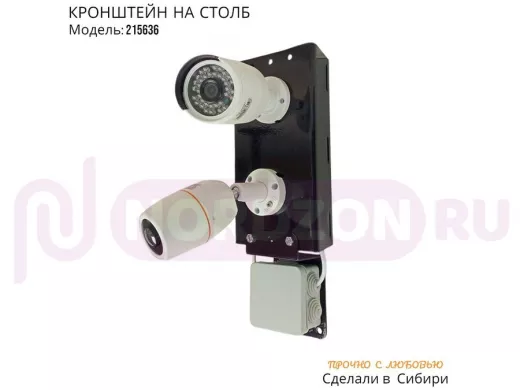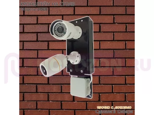 Заказать звонокКронштейн для двух камер и прожектора на столб с пластиной для гермокоробки черный IPAHD-5-215636