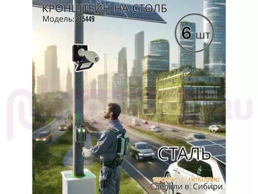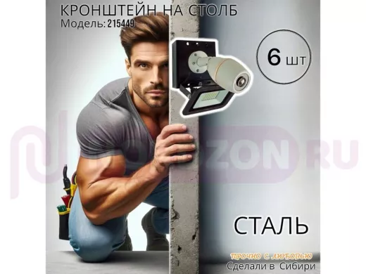 Заказать звонокНабор 6 шт. Кронштейн для 1 камеры и прожектора на столб черный "IPAHD-101BK-215449" под хомут