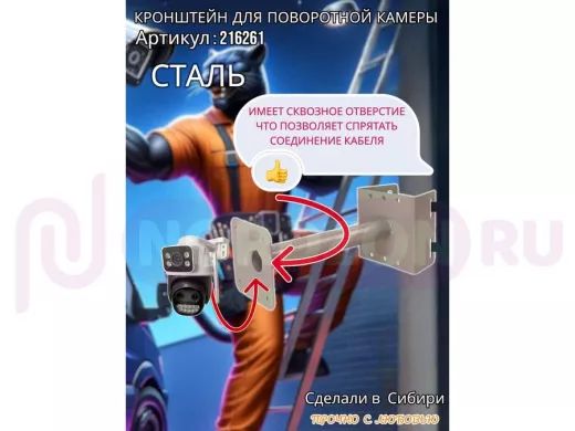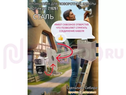 - Стальной кронштейн позволяет вынести камеру от столба на 25 см.