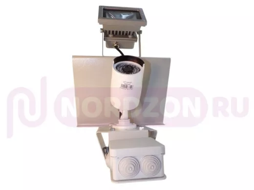 - Конструкция кронштейна позволяет крепить дополнительную опцию в виде разводной коробки, для укладки соединительных электропроводов от камеры и прожектора.
