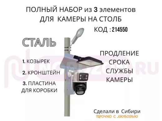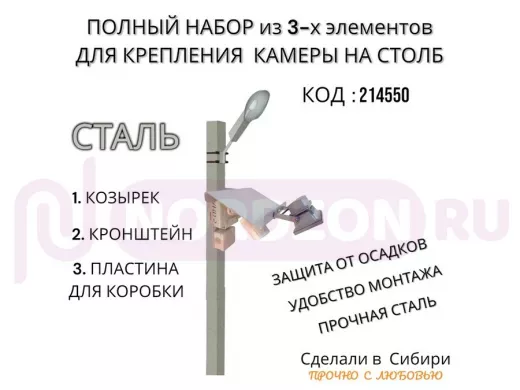 - Кронштейн позволяет быстро зафиксировать камеру и прожектор на столбе, не сверля его.
