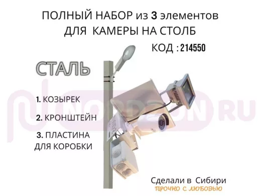 - В наборе: кронштейн + козырек + пластина для коробки