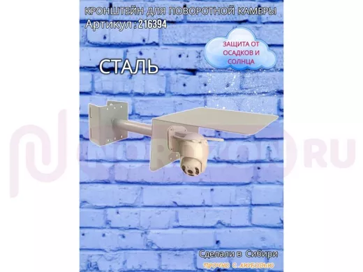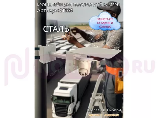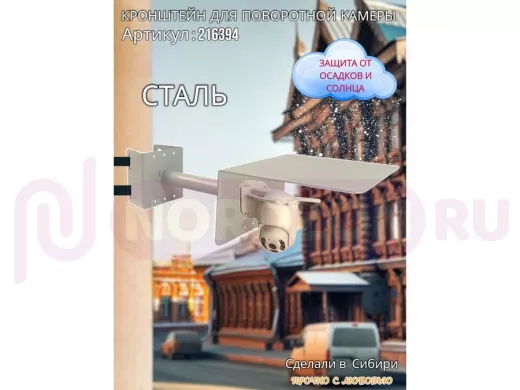 Заказать звонокКронштейн на столб для поворотной камеры с козырьком и вылетом 25 см "HIWOLL-216394" серый, сталь