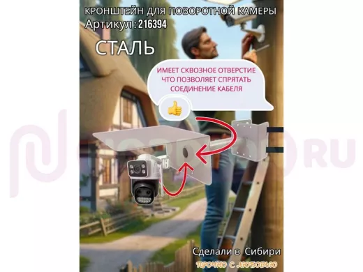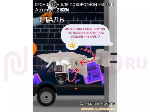 - Стальной кронштейн позволяет вынести камеру от столба на 25 см.