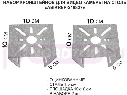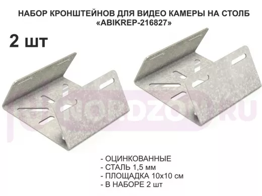 Заказать звонокНабор 2 шт. Кронштейн оцинкованный для камеры на столб "ABIKREP-216827" 100х104мм, сталь,под хомуты