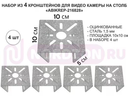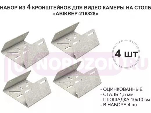 Заказать звонокНабор 4 шт. Кронштейн оцинкованный для камеры на столб "ABIKREP-216828" 100х104мм,сталь, под хомуты
