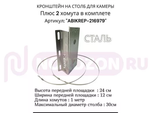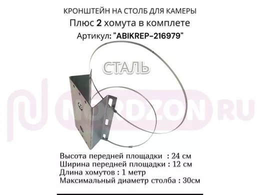 Заказать звонокКронштейн оцинкованный для камеры видеонаблюдения с хомутами на столб "ABIKREP-216979" 24х12см, 2отв