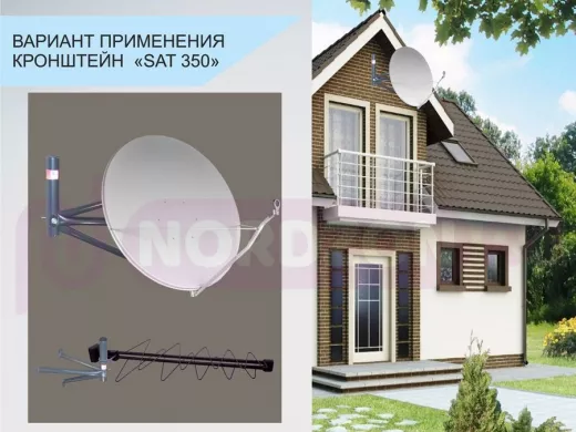 - "SAT-350" кронштейн антенный разборный предназначен для крепления антенн эфирных и спутниковых офсетных антенн к стенам зданий