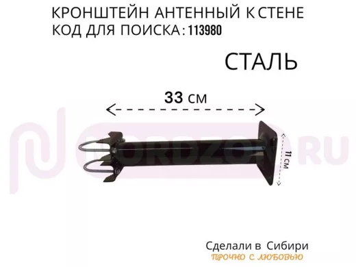 Заказать звонокКронштейн усиленный для мачт, вылет 0,3м "ВЫННОС-300BK-V2-113980" черный с 1отв.25мм для гофры, 51мм