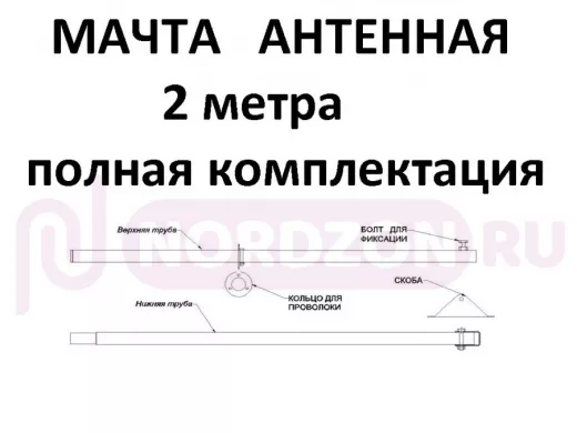 Заказать звонокМачта антенная 2 метра "SOFTANGLE-2GR-123072" серая с растяжками, подпятником, 2 секции, труба 32мм