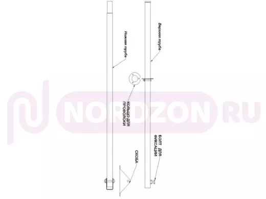 - В комплекте мачты: две трубы диаметром 32мм, подпятник и проволочные растяжки