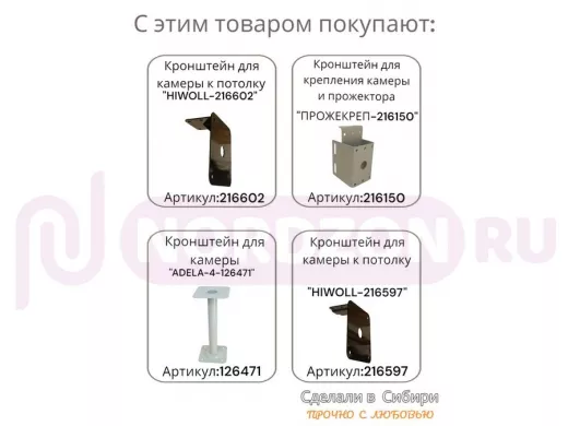 Заказать звонокКронштейн для поворотной камеры к потолку "HIWOLL-216598" серый, сталь