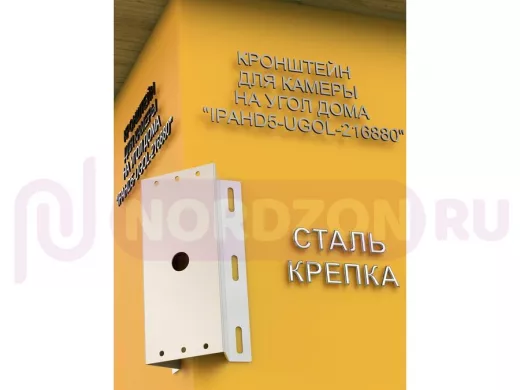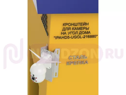 Кронштейн угловой металлический для камеры видеонаблюдения "IPAHD5-UGOL-216880". Подходит для большинства типов видеокамер: цилиндрических, купольных или поворотных