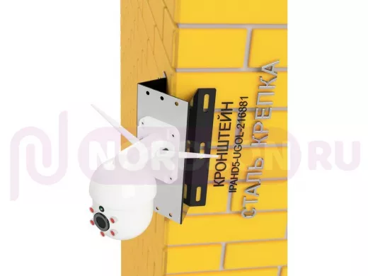 Кронштейн угловой металлический для камеры видеонаблюдения "IPAHD5-UGOL-216880". Подходит для большинства типов видеокамер: цилиндрических, купольных или поворотных