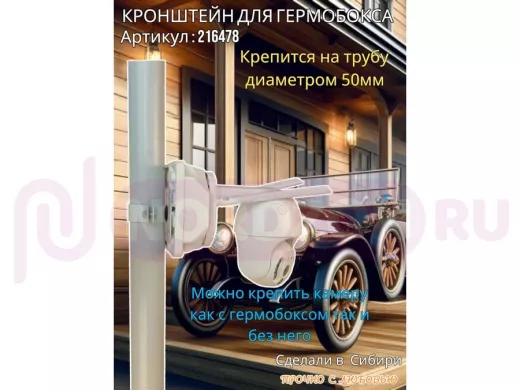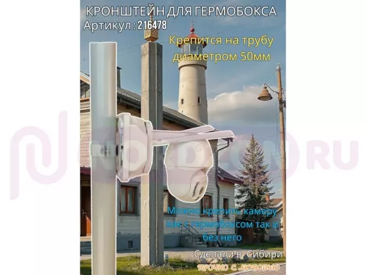 Кронштейн позволяет быстро зафиксировать гермобокс с видеокамерой на трубу.