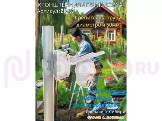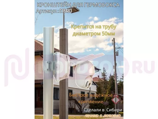 - Кронштейн позволяет быстро зафиксировать гермобокс с видеокамерой на трубу.