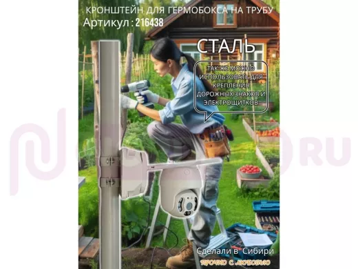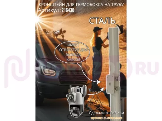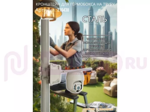 - Кронштейн позволяет быстро зафиксировать гермобокс с видеокамерой на трубу.