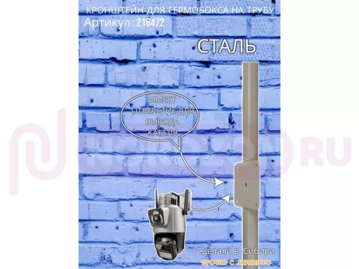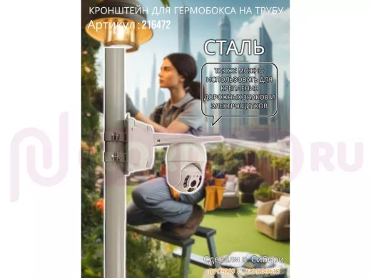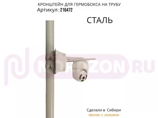 - Кронштейн позволяет быстро зафиксировать гермобокс с видеокамерой на трубу.