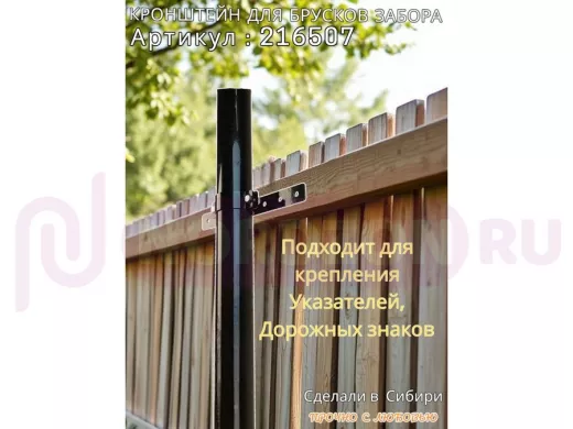 Кронштейн для крепления брусков забора на трубу диаметром 50мм "PODPORA-216507" сталь, цвет черный