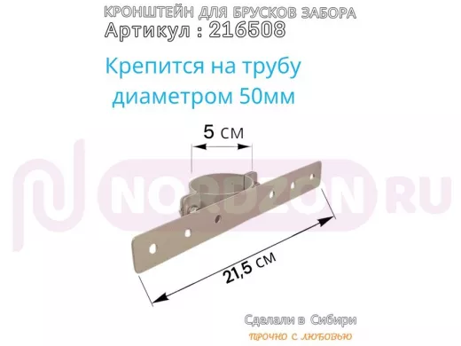 Заказать звонокКронштейн для крепления брусков забора на трубу диаметром 50мм "PODPORA-216508" сталь, цвет серый