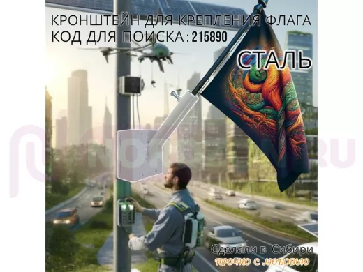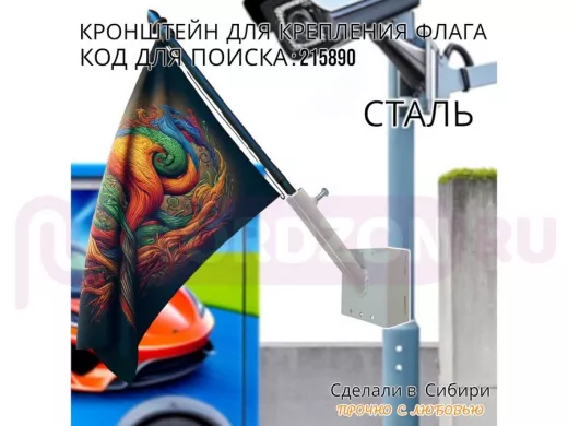 Кронштейн позволяет быстро и прочно зафиксировать флаг или вазон на столбе без его сверления.