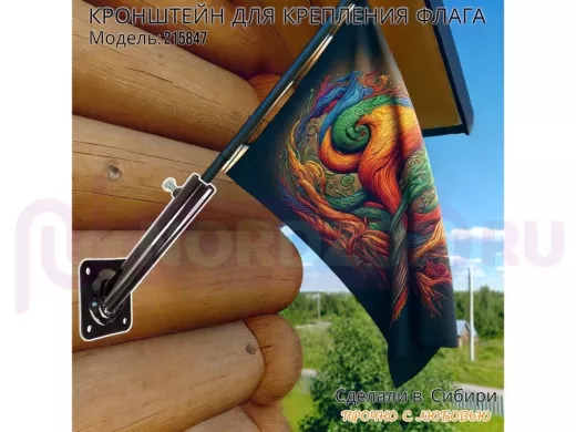 Заказать звонокКронштейн для крепления одного флага на стене угол 45 градусов "ФЛАГОКРЕП-215847" сталь, цвет черный