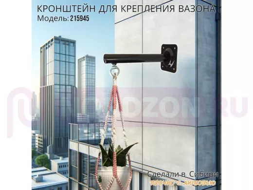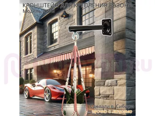 Заказать звонокКронштейн для крепления кашпо, вазона на стене угол 90гр вылет 25см "ПРОСЕКИНО-215945" сталь, черный