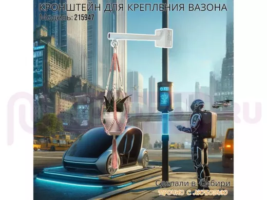 Заказать звонокКронштейн для крепления кашпо на столб угол 90 градусов "ПРОСЕКИНО-215947" вылет 35см, сталь, белый