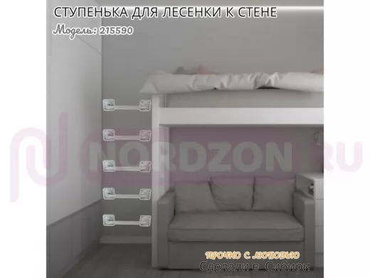 - Ступенька для лесенки имеет лаконичный и стильный дизайн, для крепления к стене
