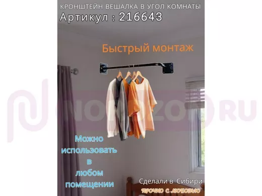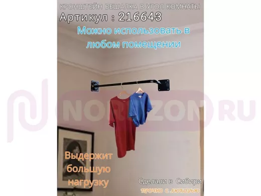 Заказать звонокКронштейн для плечиков с одеждой, вешалка в угол комнаты 60 х 29 см "ПРОСЕКИНО 216643" чёрный, 22мм