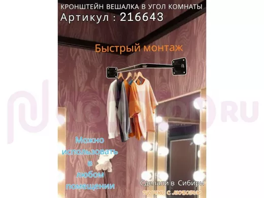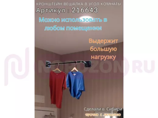 - Кронштейн для плечиков с одеждой, используется для установки в угол комнаты или к потолку.