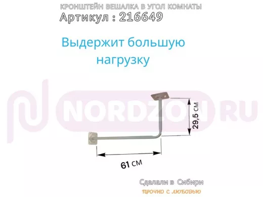 Заказать звонокКронштейн для плечиков с одеждой, вешалка в угол комнаты 60 х 29 см "ПРОСЕКИНО 216649" серый, 22мм