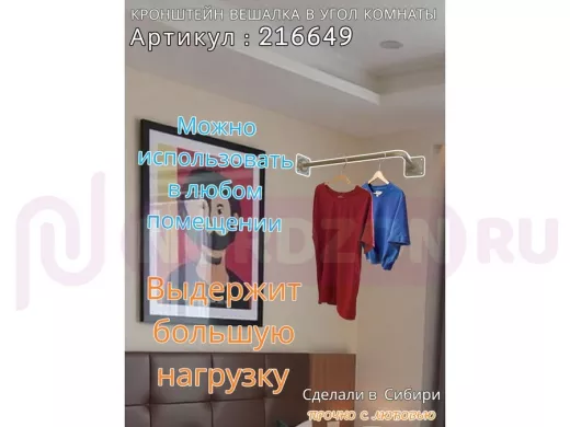 - Кронштейн для плечиков с одеждой, используется для установки в угол комнаты или к потолку.