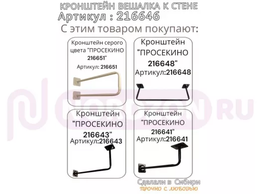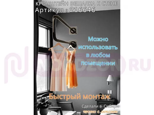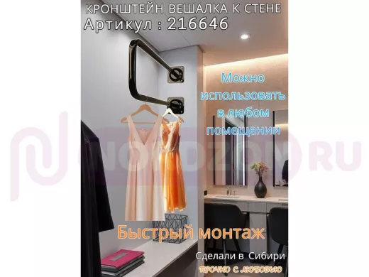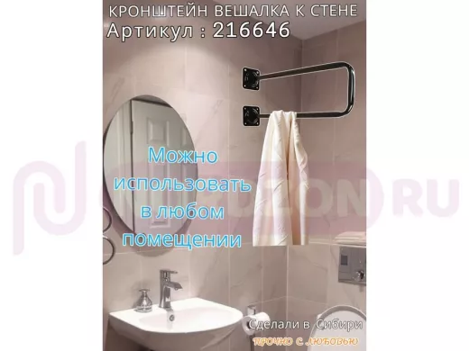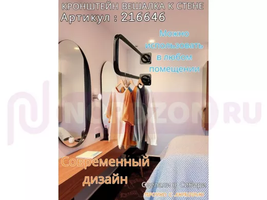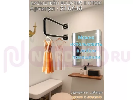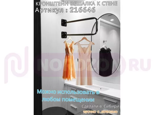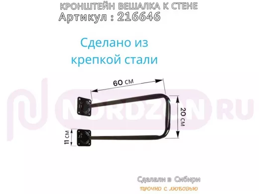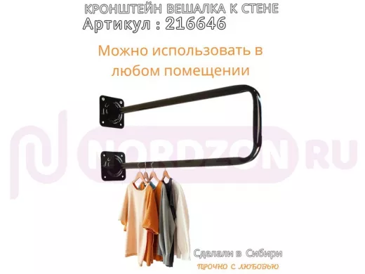 Заказать звонокКронштейн для плечиков с одеждой, вешалка к стене 60 х 20 см "ПРОСЕКИНО 216646" чёрный, 22мм
