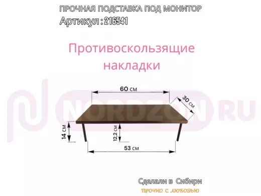 Заказать звонокПодставка под монитор на стол 60х30см высота 14см "ABBIKUS-216541" венге, черные ножки