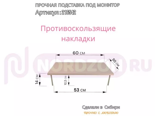 Заказать звонокПодставка под монитор на стол 60х30см высота 14см "ABBIKUS-216542" сосна выбеленная, серые ножки