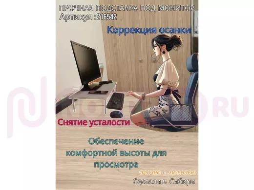- Универсальная подставка для монитора имеет лаконичный и стильный дизайн, идеально подойдет для любого интерьера.