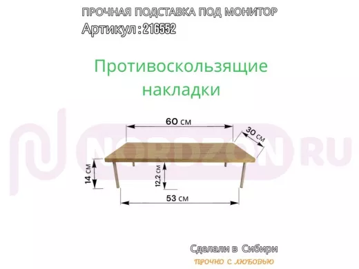 Заказать звонокПодставка под монитор на стол 60х30см высота 14см "ABBIKUS-216552" дуб сонома, серые ножки