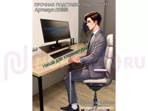 - Универсальная подставка для монитора имеет лаконичный и стильный дизайн, идеально подойдет для любого интерьера.