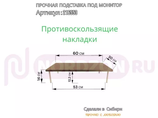 Заказать звонокПодставка под монитор на стол 60х30см высота 14см "ABBIKUS-216553" венге, серые ножки