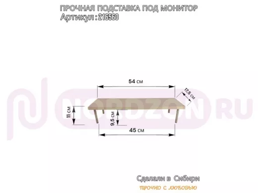 Заказать звонокПодставка под монитор на стол 54х17,5см высота 11см, сосна выбеленная "ABBIKUS-216560" серые ножки