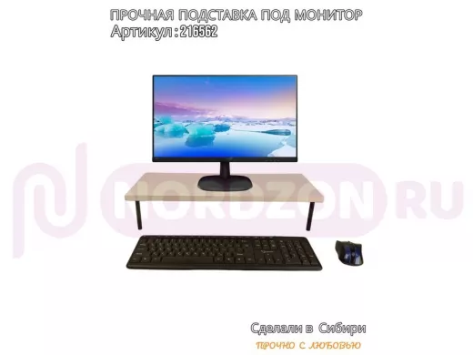 Заказать звонокПодставка под монитор на стол 54х22см высота 11см, сосна выбеленная "ABBIKUS-216562" черные ножки