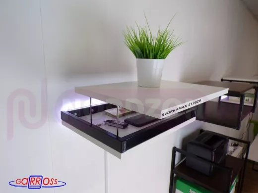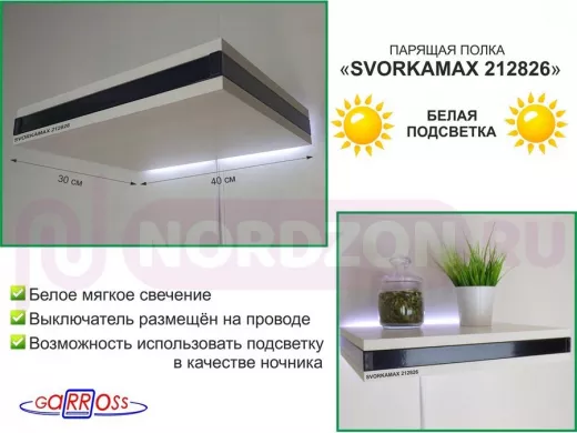 - Полка скрытого крепления укомплектована светодиодной подсветкой с выключателем на шнуре и блоком питания