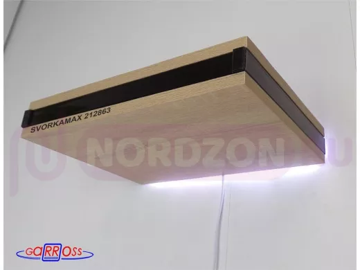 - Полка скрытого крепления укомплектована светодиодной подсветкой с выключателем на шнуре и блоком питания