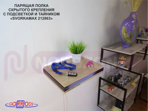 Заказать звонокПарящая полка скрытого крепления с подсветкой и тайником, черный "SVORKAMAX 212863" 30х40 см, дуб