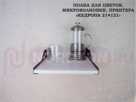 Полка предназначена для цветов, сувениров, декоративных мелочей, можно использовать на кухне для хранения посуды, мелкой бытовой техники, специй и тд.