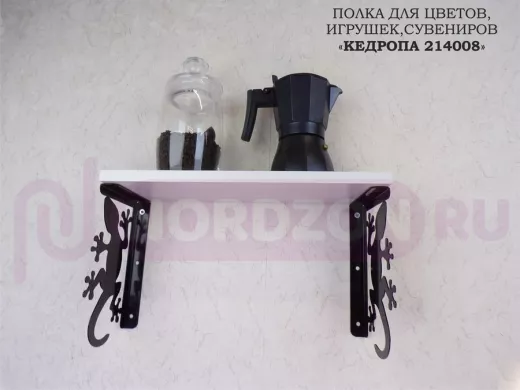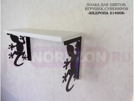 Заказать звонокПолка для цветов, игрушек,сувениров "КЕДРОПА-214008 гекон" размер 15х40х24 см, сосна выбеленая